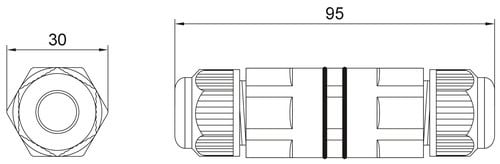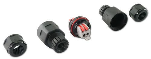 ** Caratteristiche Generali ** Genere: Morsetto Nr. Poli: 2 ** Caratteristiche Elettriche ** Corrente max: 32A Tensione max: 250V ** Caratteristiche Meccaniche ** Materiale Corpo: Poliamide Materiale Contatto: Rame Tipo contatto: a pressione Montaggio connettore: volante Sezione conduttori: 0.5-4mm² Grado di protezione: IP68