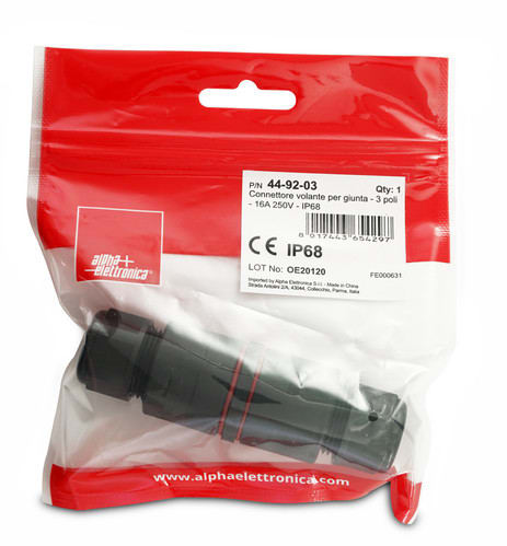 ALPHA ELETTRONICA SR - ALP44-92-03 CONNETTORE/GIUNTACAVO 3P IP68 CON LEVE