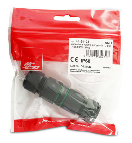 ALPHA ELETTRONICA SR - ALP44-94-03 CONNETTORE/GIUNTACAVO 3P IP68 CON LEVE