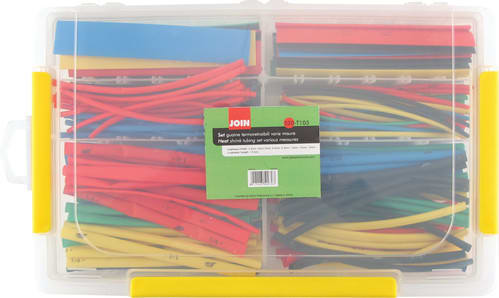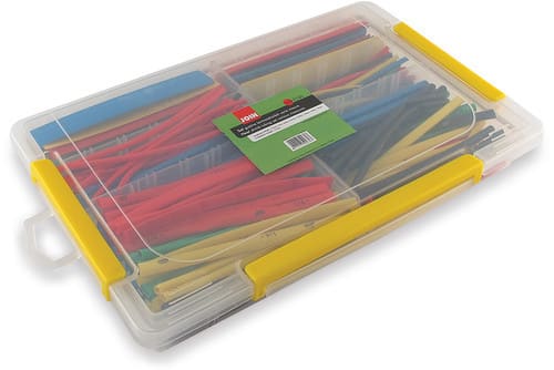 Valigietta di guaine termoretraibili composta da: ø2,5mm - 40pz ø3mm - 55pz ø5mm - 55pz ø6,5mm- 55pz ø16mm - 5pz ø9,5mm - 10pz ø13mm - 10pz ø19mm - 5pz Totale: 235 Pezzi Lunghezza: 15,2cm ** Caratteristiche ** Restringimento: 2:1