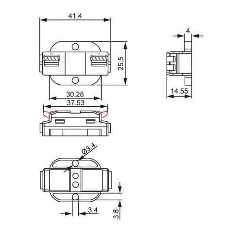 ALPHA ELETTRONICA SR - ALP542-22-1 MORSETTO 2 POLI PASS. CON FORI FISSAGGIO