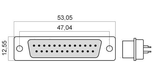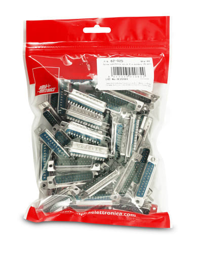** Caratteristiche Generali ** Genere: Spina Tipo Connettore: D Sub Nr. Poli: 25 ** Caratteristiche Elettriche ** Corrente max: 1A Tensione max: 50V ** Caratteristiche Meccaniche ** Materiale Corpo: Acciaio Materiale Isolamento: Poliestere Materiale Contatto: Ottone Tipo contatto: a saldare Montaggio connettore: volante