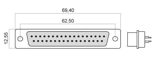** Caratteristiche Generali ** Genere: Spina Tipo Connettore: D Sub Nr. Poli: 37 ** Caratteristiche Elettriche ** Corrente max: 1A Tensione max: 50V ** Caratteristiche Meccaniche ** Materiale Corpo: Acciaio Materiale Isolamento: Poliestere Materiale Contatto: Ottone Tipo contatto: a saldare Montaggio connettore: volante