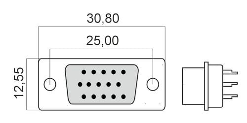 ** Caratteristiche Generali ** Genere: Spina Tipo Connettore: D Sub Nr. Poli: 15 Adatto per: VGA ** Caratteristiche Elettriche ** Corrente max: 1A Tensione max: 50V ** Caratteristiche Meccaniche ** Materiale Corpo: Acciaio Materiale Isolamento: Poliestere Materiale Contatto: Ottone Tipo contatto: a saldare Montaggio connettore: volante