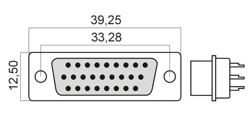 ** Caratteristiche Generali ** Genere: Spina Tipo Connettore: D Sub Nr. Poli: 26 ** Caratteristiche Elettriche ** Corrente max: 1A Tensione max: 50V ** Caratteristiche Meccaniche ** Materiale Corpo: Acciaio Materiale Isolamento: Poliestere Materiale Contatto: Ottone Tipo contatto: a saldare Montaggio connettore: volante