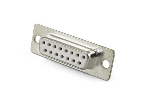 ** Caratteristiche Generali ** Genere: Presa Tipo Connettore: D Sub Nr. Poli: 15 ** Caratteristiche Elettriche ** Corrente max: 1A Tensione max: 50V ** Caratteristiche Meccaniche ** Materiale Corpo: Acciaio Materiale Isolamento: Poliestere Materiale Contatto: Ottone Tipo contatto: a saldare Montaggio connettore: volante