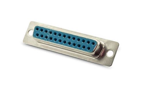 ** Caratteristiche Generali ** Genere: Presa Tipo Connettore: D Sub Nr. Poli: 25 ** Caratteristiche Elettriche ** Corrente max: 1A Tensione max: 50V ** Caratteristiche Meccaniche ** Materiale Corpo: Acciaio Materiale Isolamento: Poliestere Materiale Contatto: Ottone Tipo contatto: a saldare Montaggio connettore: volante