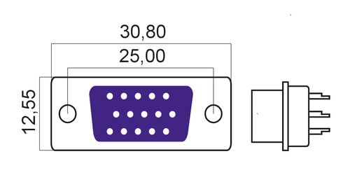 ** Caratteristiche Generali ** Genere: Presa Tipo Connettore: D Sub Nr. Poli: 15 Adatto per: VGA ** Caratteristiche Elettriche ** Corrente max: 1A Tensione max: 50V ** Caratteristiche Meccaniche ** Materiale Corpo: Acciaio Materiale Isolamento: Poliestere Materiale Contatto: Ottone Tipo contatto: a saldare Montaggio connettore: volante