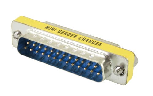 ** Caratteristiche Generali ** Genere: Adattatore Tipo Connettore A: D Sub Genere A: Maschio Tipo Connettore A: Maschio D Sub 25 poli Tipo Connettore B: D Sub Genere B: Femmina Tipo Connettore B: Femmina D Sub 25 poli ** Caratteristiche Meccaniche ** Materiale Corpo: Ottone nichelato Materiale Isolamento: PVC Materiale Contatto: Ottone