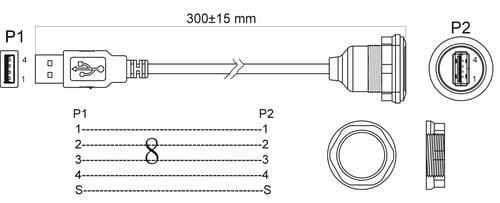 Fissaggio: a pannello Spessore pannello: 1-8mm Diametro foro: ø22mm ** Caratteristiche Generali ** Genere: Adattatore Colore: Nero Orientamento: Dritto Tipo Connettore A: Presa USB 2.0 tipo A Genere A: Presa Tipo Connettore A: Presa Presa USB 2.0 tipo A Tipo Connettore B: Spina USB 2.0 tipo A Genere B: Spina Tipo Connettore B: Spina Spina USB 2.0 tipo A ** Caratteristiche Elettriche ** Schermatura: no ** Caratteristiche Meccaniche ** Lunghezza Cavetto: 30cm