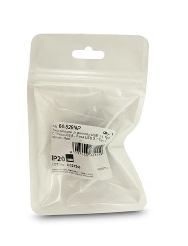 Fissaggio: a pannello Spessore pannello: 1-8mm Diametro foro: ø22mm ** Caratteristiche Generali ** Genere: Presa Colore: Nero Orientamento: Dritto Tipo Connettore A: Presa USB 3.1 tipo C Genere A: Presa Tipo Connettore A: Presa Presa USB 3.1 tipo C Tipo Connettore B: Presa USB 3.1 tipo C Genere B: Presa Tipo Connettore B: Presa Presa USB 3.1 tipo C ** Caratteristiche Elettriche ** Schermatura: no