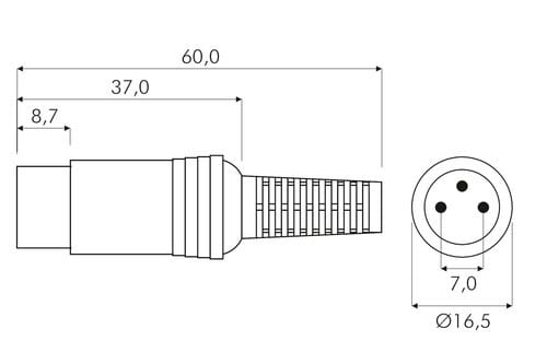 ** Caratteristiche Generali ** Genere: Spina Tipo Connettore: DIN Norma di riferimento: DIN 45322 Colore: Nero Orientamento: Dritto Nr. Poli: 6 Adatto per: 8-1 ** Caratteristiche Meccaniche ** Materiale Corpo: termoplastico Tipo contatto: a saldare Montaggio connettore: volante Diametro cavo max: 6mm
