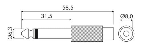 ** Caratteristiche Generali ** Genere: Adattatore Orientamento: Dritto Tipo Connettore A: Jack Genere A: Spina Tipo Connettore A: Spina Jack ø6.3mm Mono Tipo Connettore B: RCA Genere B: Presa Tipo Connettore B: Presa RCA ** Caratteristiche Elettriche ** Schermatura: si ** Caratteristiche Meccaniche ** Materiale Corpo: Ottone nichelato Materiale Contatto: Ottone nichelato Lunghezza Cavetto: 2cm