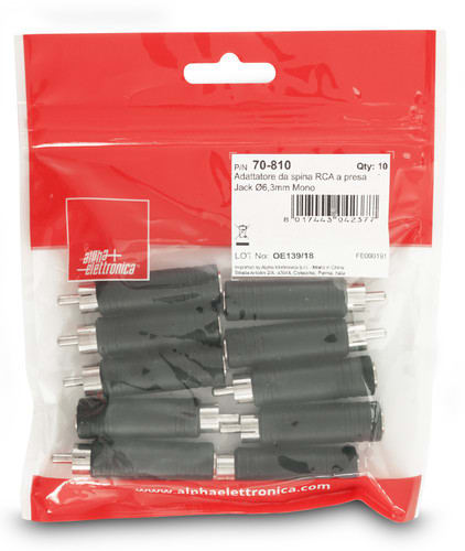 ** Caratteristiche Generali ** Genere: Adattatore Orientamento: Dritto Tipo Connettore A: RCA Genere A: Spina Tipo Connettore A: Spina RCA Tipo Connettore B: Jack Genere B: Presa Tipo Connettore B: Presa Jack ø6.3mm Mono ** Caratteristiche Elettriche ** Schermatura: si ** Caratteristiche Meccaniche ** Materiale Corpo: PVC Materiale Contatto: Ottone nichelato Lunghezza Cavetto: 2cm