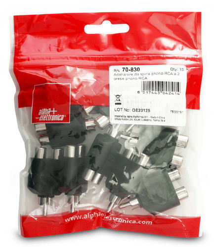 ** Caratteristiche Generali ** Genere: Adattatore Orientamento: Dritto Tipo Connettore A: RCA Genere A: Spina Tipo Connettore A: Spina RCA Tipo Connettore B: RCA Genere B: Presa Tipo Connettore B: 2x Presa RCA ** Caratteristiche Elettriche ** Schermatura: si ** Caratteristiche Meccaniche ** Materiale Corpo: PVC Materiale Contatto: Ottone nichelato Lunghezza Cavetto: 2cm