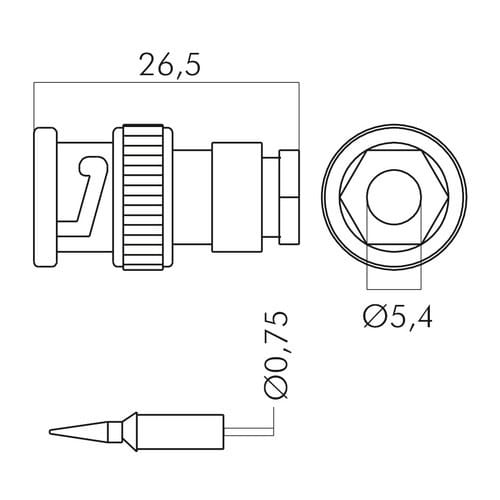 ** Caratteristiche Generali ** Genere: Spina Tipo Connettore: BNC Foglio tecnico: UG88 Orientamento: Dritto Qualità: Qualità Standard Adatto per cavo RG: RG-59/U RG62/U RG210/U ** Caratteristiche Elettriche ** Impedenza: 75ohm ** Caratteristiche Meccaniche ** Materiale Corpo: Ottone nichelato Tipo contatto: a saldare o crimpare Terminazione: serraggio a vite Montaggio connettore: volante