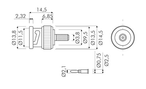 ** Caratteristiche Generali ** Genere: Spina Tipo Connettore: BNC Foglio tecnico: UG260 Orientamento: Dritto Qualità: Qualità Standard Adatto per cavo RG: RG-59/U RG62/U RG210/U ** Caratteristiche Elettriche ** Impedenza: 75ohm ** Caratteristiche Meccaniche ** Materiale Corpo: Ottone nichelato Tipo contatto: a saldare o crimpare Terminazione: a crimpare Montaggio connettore: volante Diametro cavo nom: 6mm
