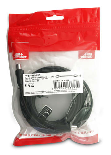 ALPHA ELETTRONICA SR - ALP87-010/05B CAVO TV M-M NERO ADATT.F-F 5M POLYBAG