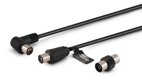 ** Caratteristiche ** Colore cavo: Nero Lunghezza Cavo: 2m Diametro cavo: ø5mm Tipo Cavo: Lineare, Tondo Guaina cavo: PVC Schermatura: Calza + foglio Materiale conduttori: Rame Puro Corpo connettori: Plastico Finitura contatto : Nichelato ** Connettore A ** Tipo Connettore A: Spina TV Coax ø9.5mm ** Connettore B ** Tipo Connettore B: Spina TV Coax ø9.5mm 90°