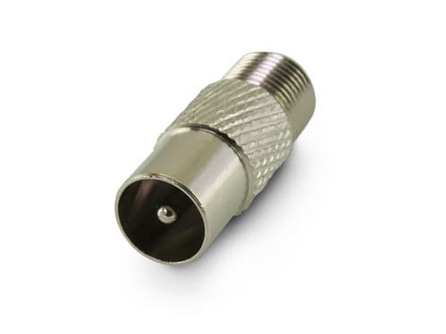 ** Caratteristiche Generali ** Genere: Adattatore Tipo Connettore A: Coassiale TV Genere A: Spina Tipo Connettore A: Spina Coassiale TV ø9.5mm Tipo Connettore B: F Genere B: Presa Tipo Connettore B: Presa F ** Caratteristiche Meccaniche ** Materiale Corpo: Ottone nichelato Materiale Isolamento: Delrin