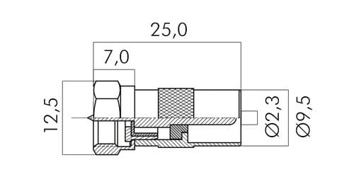 ** Caratteristiche Generali ** Genere: Adattatore Tipo Connettore A: F Genere A: Spina Tipo Connettore A: Spina F Tipo Connettore B: Coassiale TV Genere B: Spina Tipo Connettore B: Spina Coassiale TV ø9.5mm ** Caratteristiche Meccaniche ** Materiale Corpo: Ottone nichelato Materiale Isolamento: Delrin