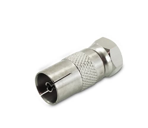 ** Caratteristiche Generali ** Genere: Adattatore Tipo Connettore A: F Genere A: Spina Tipo Connettore A: Spina F Tipo Connettore B: Coassiale TV Genere B: Presa Tipo Connettore B: Presa Coassiale TV ø9.5mm ** Caratteristiche Meccaniche ** Materiale Corpo: Ottone nichelato Materiale Isolamento: Delrin