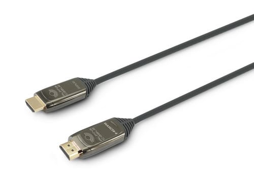 ** Caratteristiche ** Interfaccia: HDMI® Tipologia: HDMI® High Speed with Ethernet Risoluzione massima: 2160p (4K@60fps) Standard supportati: ARC, CEC, HDR Profondità colore: 16 bit/canale Compatibile 3D: si Versione HDCP: 2.2 Velocità: 18Gbps Colore cavo: Grigio Lunghezza Cavo: 10m Diametro cavo: ø5mm Tipo Cavo: Fibra ottica Applicazione CPR: Posa mobile Tecnologia: Attivo Guaina cavo: PVC Corpo connettori: Metallico Finitura contatto : Dorato Raggio di curvatura min: 10mm ** Connettore A ** Tipo Connettore A: Spina HDMI® 19 poli Dritto ** Connettore B ** Tipo Connettore B: Spina HDMI® 19 poli Dritto Attenzione: verso di collegamento indicato sul connettore.