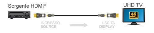 Cavo HDMI 2.0 AOC in fibra ottica con connettori HDMI2.0 A 19-pin / HDMI A 19-pin con interfaccia Micro HDMI. I connettori HDMI removibili consentono al cavo di essere facilmente installato anche in spazi ristretti. ** Caratteristiche ** Interfaccia: HDMI® Tipologia: HDMI® High Speed with Ethernet Risoluzione massima: 2160p (4K@60fps) Standard supportati: ARC, CEC, HDR Profondità colore: 16 bit/canale Compatibile 3D: si Versione HDCP: 2.2 Velocità: 18Gbps Colore cavo: Grigio Lunghezza Cavo: 10m Diametro cavo: ø5mm Tipo Cavo: Fibra ottica Applicazione CPR: Posa mobile Tecnologia: Attivo Guaina cavo: PVC Corpo connettori: Metallico Finitura contatto : Dorato ** Connettore A ** Tipo Connettore A: Spina HDMI® 19 poli Dritto ** Connettore B ** Tipo Connettore B: Spina HDMI® 19 poli Dritto Attenzione: verso di collegamento indicato sul connettore.