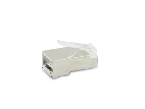 ** Caratteristiche Generali ** Genere: Spina Categoria: CAT.6 Colore: Trasparente Nr. Poli: 8 Configurazione Poli: 8P8C Adatto per tipo conduttore: Trefolo + Rigido Sezione AWG: AWG24-26 Tipo Clip: Standard ** Caratteristiche Elettriche ** Schermatura: si ** Caratteristiche Meccaniche ** Materiale Corpo: PC UL 94V-2 Materiale Contatto: Bronzo fosforoso Placcatura contatti: Contatti dorati Tipo contatto: 3-prong Diametro conduttori max: 1mm Diametro cavo max: 6mm Inserti: 0 Placcatura: 50µm Formato Corpo: Standard Dim. A: 11.68mm Dim. B: 21.48mm ** Caratteristiche Termiche ** Classe di infiammabilità: UL94V-2