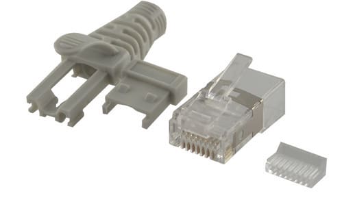 ** Caratteristiche Generali ** Genere: Spina Categoria: CAT.6A Colore: Trasparente Nr. Poli: 8 Configurazione Poli: 8P8C Adatto per tipo conduttore: Trefolo + Rigido Sezione AWG: AWG22-24 Tipo Clip: Standard ** Caratteristiche Elettriche ** Schermatura:si Tipo Schermatura: U/FTP ** Caratteristiche Meccaniche ** Materiale Corpo: PC UL 94V-2 Materiale Contatto: Bronzo fosforoso Placcatura contatti: Contatti dorati Diametro conduttori max: 1mm Diametro cavo max: 6mm Inserti: 1 + cappuccio Placcatura: 50µm Formato Corpo: Standard Dim. A: 11.68mm Dim. B: 21.48mm ** Caratteristiche Termiche ** Classe di infiammabilità: UL94V-2