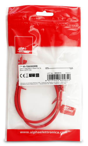 ALPHA ELETTRONICA SR - ALP95-706/005RB Network patch cord cable in Copper Cat.5e Red U/UTP 0,5m