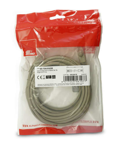 ALPHA ELETTRONICA SR - ALP95-706/05GB CAVO PATCH CAT5E 5M U/UTP GRI.CU.POLY
