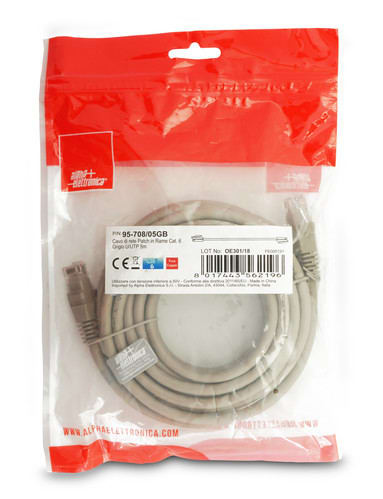 ALPHA ELETTRONICA SR - ALP95-708/05GB CAVO PATCH CAT6 5M U/UTP GRIGIO CU PB