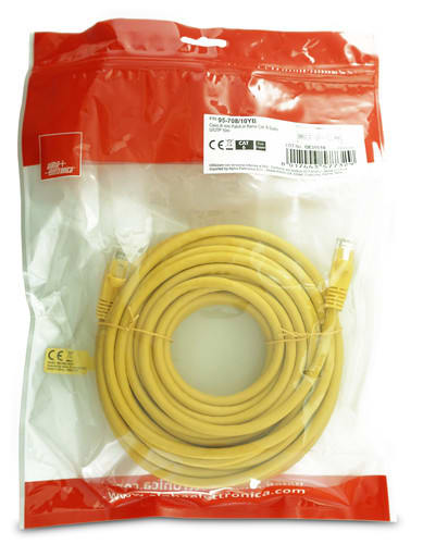 ** Caratteristiche ** Cat.: 6 Costruzione: U/UTP Collegamenti: Dritto Standard: EIA-TIA 568B - ISO/IEC 11801 Colore cavo: Giallo Lunghezza Cavo: 10m Guaina cavo: PVC Impedenza: 100ohm Schermatura: Non schermato Tipo conduttori: Trefolo Materiale conduttori: Rame Puro Sezione conduttori: AWG24 Finitura contatto : Dorato ** Connettore A ** Tipo Connettore A: Spina Modulare 8P8C ** Connettore B ** Tipo Connettore B: Spina Modulare 8P8C