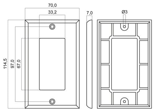 Scatola da parete profondità 36mm. Dimensioni: 115x70x36mm Colore: Bianco Completo di Kit viti e cover.