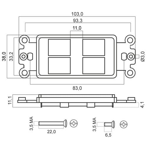 Supporto per frutti Keystone a 4 posizioni. ** Colore: ** Bianco Completo di Kit viti