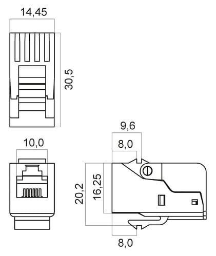 ** Caratteristiche Generali ** Tipo Connettore: RJ11 Colore: Bianco Nr. Poli: 4 Configurazione Poli: 6P4C ** Caratteristiche Elettriche ** Schermatura: no ** Caratteristiche Meccaniche ** Materiale Corpo: Plastico Terminazione: a pressione Tipo Keystone: EU 20.0mm