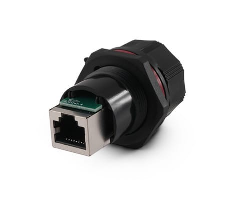 ** Caratteristiche Generali ** Genere: Presa Categoria: CAT.5e Colore: Nero Orientamento: Dritto ** Caratteristiche Elettriche ** Schermatura: si ** Caratteristiche Meccaniche ** Materiale Corpo: PC Materiale Contatto: Lega di rame Montaggio connettore: pannello Grado di protezione: IP67 Foro incasso: ø25.7mm