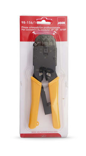 ** Caratteristiche Generali ** Applicazioni: Telefoniche e Dati Funzione: Crimpatura Adatta per connettori: RJ11 6P4C, RJ12 6P6C, RJ9 4P4C, RJ45 8P8C, RJ11 6P4C DEC, RJ12 6P6C DEC Chiusura: tramite gancio Inserto: fisso Materiale corpo: Acciaio Materialeimpugnatura: PVC Forma impugnatura: Antiscivolo ed ergonomica