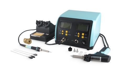 La stazione saldante 98-220 integra due funzionalità: saldatura e dissaldatura. E' dotata di due pannelli LCD ed è stata progettata per operare con temperature da 160°C a 480°C, ideale per saldare e dissaldare componenti elettronici in applicazioni generiche con stagno senza piombo. ** Contenuto confezione ** Stazione saldante/dissaldante Saldatore a stilo (punta 98-220/1-1) Pistola dissaldante (ugello 98-220/4-1) Spugna e paglietta ** Caratteristiche Generali ** Alimentazione: Elettrica Potenza: 60 - 90W Tensione di funzionamento: 230V Temperatura: 160/480°C Materiale corpo: Plastico Stile punta: Conica