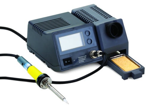 Stazione saldante con controllo della temperatura da 150° a 450°C. Temperatura visualizzata sull'ampio display e facilmente impostabile tramite pulsanti. ** Caratteristiche Generali ** Alimentazione: Elettrica Funzioni: Saldatore Potenza: 48W Tensione di funzionamento: 230V Frequenza: 50Hz Temperatura: 150/450°C Materiale corpo: Plastico Classe di isolamento I Completo di cavo di alimentazione non separabile con spina Schuko.