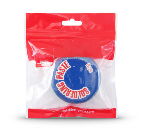 Pasta saldante per la saldatura di componenti elettronici. Il prodotto agevola l'operazione di saldatura consentendo un collegamento più rapido tra i componenti e le piazzole di saldatura. ** Caratteristiche Generali ** Peso: 50g I prodotti sono destinati esclusivamente all’uso professionale e industriale e non sono adatti per consumo e all’uso domestico.