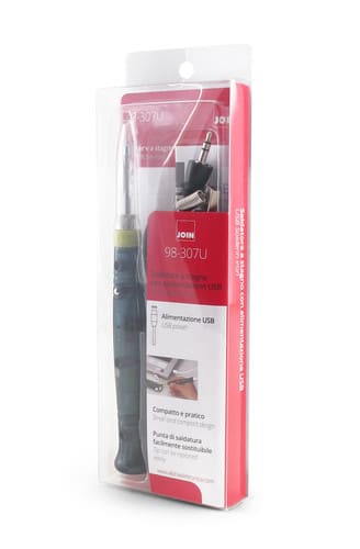 Portalo sempre con te. Da utilizzare per piccole saldature con qualsiasi power bank. ** Caratteristiche Generali ** Alimentazione: Elettrica Funzioni: Saldatore Potenza: 8W Tensione di funzionamento: 5V Temperatura: 380/400°C Materiale corpo: Plastico Con Cavo completo di connettore USB tipo "A" Utilizzare il prodotto esclusivamente con power bank. ATTENZIONE: Il saldatore va in stand-by dopo 25 secondi di inutilizzo solo se alimentato tramite power bank. Non va in stand-by se alimentato tramite alimentatore 5V da rete. Contenuto della confezione - Mini saldatore - Punta saldante con chiusura - Supporto per saldatore - Cavo di alimentazione - Stagno - Manuale d'uso