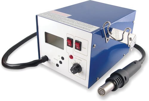 Stazione ad aria calda per saldatura e dissaldatura di componenti a montaggio superficiale SMD. La stazione è adatta per un utilizzo professionale e si rivolge a laboratori, centri assistenza e industrie nel campo dell'elettronica. La temperatura e la velocità del flusso dell'aria sono regolabili. Il display LCD permette la visualizzazione dei parametri di temperatura. L'ampia potenza consente alla stazione di raggiungere velocemente la temperatura impostata e allo stesso tempo di mantenerla stabile. Inclusi nella confezione 4 ugelli differenti per adattarsi al tipo di lavorazione da effettuare. ** Caratteristiche Generali ** Alimentazione: Elettrica Funzioni: Aria calda Potenza: 320W Tensione di funzionamento: 230V Frequenza: 50Hz Temperatura: 160/480°C Materiale corpo: Metallico Dimensioni: 145mm x 160mm x 225mm Capacità: 24L/min La confezione contiene i seguenti ugelli: 79-3901 (ø2,5) 79-3902 (10x10mm) 79-3903 (15x15mm) 79-3907 (ø4mm) 79-3941 (FP Pick-up tube) 79-3940 (FP Pick-up Wire) 79-3942 (FPPick-up Wire)