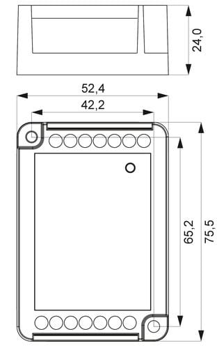 Caratteristiche generali Controller RGBW per strisce led e sorgenti led resistive a tensione costante 12V oppure 24V. Il controllo dell'intensità luminosa e delle funzioni viene eseguito tramite pulsanti generici opportunamente installati ai morsetti P1(Bianco) e P2(RGB). Pulsanti non forniti. Il dispositivo mantiene memoria dell'ultimo modo di funzionamento impostato anche dopo aver spento e riacceso l'alimentazione. ** Caratteristiche Generali ** Funzione: Controller Adatto per: RGBW Metodo di controllo: Pulsante ** Caratteristiche Elettriche ** Tipo regolazione: Tensione costante (CV) Tensione d'ingresso: 12/24V Tensione d'uscita: come ingresso Tipo di uscita: morsetti Metodo di connessione: anodo comune Corrente/Ch: 3A n. canali: 4 Potenza nominale (12V): 144W Potenza nominale (24V): 288W ** Caratteristiche Meccaniche ** Lunghezza: 76mm Larghezza: 52.5mm Altezza: 24.5mm Grado di protezione: IP20 Materiale corpo: Plastica Colore corpo: Bianco ** Caratteristiche Termiche ** Temp. di funzionamento: -10 / 40°C Modalità di utilizzo La striscia led RGB o RGBW collegata all'uscita del controller ALC242 può essere accesa o spenta tramite pressione dei due pulsanti. Il pulsante P1 controlla il canale Bianco del dimmer: - La pressione breveaccende e spegne il canale Bianco - La pressione lunga mentre il carico è acceso fa variare l'intensità luminosa del canale Bianco - La pressione lunga da spento imposta la modalità "Luce di cortesia", la luce viene accesa con intensità al 10% Il pulsante P2 controlla i canali RGB, con due modalità di funzionamento: - Luce colorata con rotazione colori - Luce colorata fissa E' possibile cambiare la modalità tramite doppio click del pulsante P2. La pressione lunga del pulsante ha funzione differente a seconda della modalità o dello stato in cui si trova il controller ALC242: - Se in "Luce colorata con rotazione colori", viene variata la velocità di rotazione - Se in "Luce colorata fissa" viene variata l’intensità della luce Ad ogni pressione prolungata del tasto viene invertita la direzione di variazione della velocità o dell’intensità. Protezioni Sovratemperatura, Inversione di polarità, Sovraccarico, Cortocircuito in uscita Note L’installazione deve essere eseguita solamente da personale qualificato. Si consiglia di installare un fusibile adeguato in ingresso al dispositivo. L’alimentatore dovrà essere scelto in funzione del carico led collegato per tensione e corrente. Utilizzare un alimentatore con potenza nominale maggiore rispetto al carico da alimentare (circa 30%).