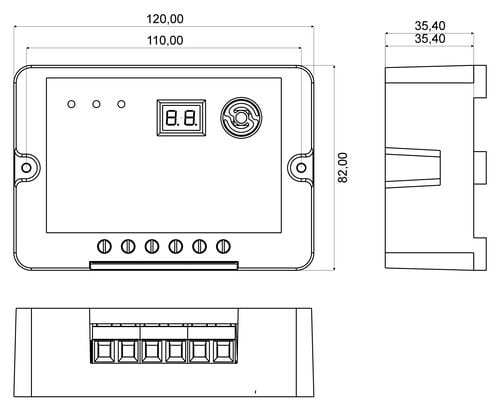 ** Caratteristiche generali ** Funzione crepuscolare: riconoscimento giorno/notte dalla tensione dei pannelli. Timer programmabile per l'accensione automatica del carico come luci notturne. Timer programmabile tramite pulsante. Accensione automatica al tramonto o all'alba per un numero di ore programmabili. Possibilità di accensione del carico manualmente. Visualizzazione delle impostazioni tramite display Modalità di carica PWM (modalità larghezza d'impulso). Regolazione automatica stato di carica dellabatteria. Compensazione in temperatura della carica. Si consiglia l'utilizzo di pannelli specifici per applicazioni ad isola a bassa tensione. Collegamento interno con positivo comune. ** Dati tecnici ** Tensione di batteria: 12V/24V automatico Ingressopannelli: Massima tensione a pannelli a circuito aperto: 46V Corrente massima in ingresso: 10A Corrente massima in uscita: 10A Autoconsumo: 12mA LVD 12V/24V: 11V (regolabile da 9V a 12V) / 22V (regolabile da 18V a 24V) LVR 12V/24V: 12,6V (regolabile da 11V a 13,5V) / 25,2V (regolabile da 22V a 27V) Fine carica: 13,8V (regolabile da 13V a 15V) / 27,6V (regolabile da 26V a 30V) Riconnesione del carico: 12,6V (25,20V) Tensione minima disconnessione batteria (LVD): 11,1V (22.2V) ** Protezioni ** Corto circuito pannelli e del carico in uscita Sovraccarico pannelli e del carico in uscita Corrente inversa notturna Sovratensioni sul carico Sovratemperatura Disconnessione tensione minima batteria Disconnessione tensione massima batteria L'inversione delle polarità sia dei pannelli che delle batterie, possono danneggiare irreparabilmente il regolatore. Danno non in garanzia ** Caratteristiche meccaniche ** Temperatura ambiente consentita: -25°C/55°C Grado di protezione: IP20 Sezione cavi consigliati: 4mm² Dimensioni (LxWxH): 60,04x41,04x17,70 ** Caratteristiche Generali ** Tensione di Sistema Nominale: 12V, 24V Corrente di ricarica max: 10A Tensione massima pannelli: 46Vdc Tensione batteria min: 10Vdc Tensione batteria max: 28.6Vdc Potenza massima pannelli (batt. 12V): 120W Potenza massima pannelli (batt. 24V): 240W Collegamento interno: Positivo comune Display Interno: Display LED 7 segmenti ** Caratteristiche Meccaniche ** Materiale contenitore: Plastico Grado di protezione: IP20 ** Timer uscita carico ** E' possibile configurare il timer dell'uscita carico impostando tramite il display un valore da 00 a 18. 00 Controllo manuale carico 01 Carico sempre acceso 02 Carico sempre spento 03 Carico acceso dal tramonto all'alba + controllo manuale 04 Carico acceso dall'alba al tramonto + controllo manuale 05 Carico acceso dal tramonto per 2h + controllo manuale 06 Carico acceso dal tramonto per 4h + controllo manuale 07 Carico acceso dal tramonto per 6h + controllo manuale 08 Carico acceso dal tramonto per 8h + controllo manuale 09 Carico acceso dal tramonto per 10h + controllo manuale 10 Carico acceso dal tramonto per 12h + controllo manuale 11 Carico acceso dall’alba per 2h + controllo manuale 13 Carico acceso dall’alba per 6h + controllo manuale 14 Carico acceso dall’alba per 8h + controllo manuale 15 Carico acceso dall’alba per 10h + controllo manuale 16 Carico acceso dall’alba per 12h + controllo manuale 17 Pannello sempre escluso non accetta la ricarica da pannello. Carico inizialmente Acceso. 18 Pannello sempre escluso non accetta la ricarica da pannello. Carico inizialmente spento.
