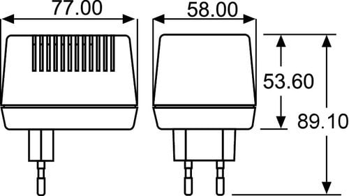 Alimentatore Made in Italy plug-in con uscita in tensione alternata. ** Caratteristiche Generali ** Tecnologia: lineare Costruzione: plugin Tipo regolazione: CV Grado Protezione: IP20 ** Caratteristiche Elettriche ** Regolazione uscita: commutatore manuale Tensione d'ingresso: 230Vac Frequenza: 50Hz Potenza: 11.2W Corrente d'uscita: 600mA Tensione d'uscita: 9 - 24V Tolleranza tensione d'uscita: ±10% Protezioni: sovratemperatura ** Caratteristiche Meccaniche ** Dimensioni (LxWxH): 77 x 58 x 53.6mm Raffreddamento: passivo Materiale contenitore: Plastico Colore: Nero Connessioni: connettore intercambiabile Cavo d'uscita: integrato Connettori: 3,5mm, 5,5x2,5mm, 5,5x2,1mm, 4,0x1,7mm, 2,35x0,7mm, 3,5x1,3mm Polarità: invertibile ** Caratteristiche Termiche ** Temperatura di lavoro: -10/30°C