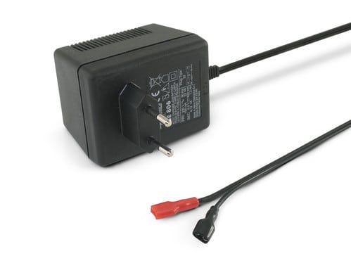 ** Caratteristiche ** Ricarica tampone Adatto per batterie 12V, capacità compresa da 1,3Ah a 7,2Ah ** Caratteristiche Generali ** Costruzione: plugin Tipo regolazione: CC + CV Classe isolamento: II Adatto per batterie: 12V Grado Protezione: IP20 ** Caratteristiche Elettriche ** Tensione d'ingresso: 230Vac Frequenza: 50Hz Tensione d'uscita: 13.8V Corrente d'uscita: 600mA Tolleranza tensione d'uscita: ±5% Protezioni: sovratemperatura, corto circuito, inversione ** Caratteristiche Meccaniche ** Dimensioni (LxWxH): 77 x 58 x 53.6mm Raffreddamento: passivo Materiale contenitore: Plastico Colore: Nero Connessioni: connettore fisso Connettori: Faston 6,3mm ** Caratteristiche Termiche ** Temperatura di lavoro: 0/30°C ** Modalità di carica ** Tipo di carica: Ciclica - Tampone Indicazione di carica: Led giallo acceso Indicazione di fine carica: Led giallo spento Batteria non connessa o Stand-by: Led spento Connettore d'uscita: Vedi dettaglio