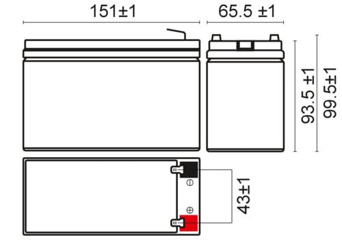** Caratteristiche Generali ** Tecnologia: LiFePO4 Cicli di vita: 2000 ** Caratteristiche Elettriche ** Tensione: 12.8V Capacità: 6Ah Energia: 76.8KWh Corrente di carica massima: 3A Corrente di carica raccomandata: 3A Tensione di carica stand-by: 14.6V Corrente di scarica massima: 6A Corrente di scarica raccomandata: 6A Tensione di fine scarica: 10V Corrente di scarica impulsiva: 12A @ 10s Connessione serie: 4 Protezioni: Corto circuito, Scarica eccessiva, Sovratemperatura ** Caratteristiche Meccaniche** Dimensioni: 151mm x 65.5mm x 99.5mm Peso: 0.82Kg Connessioni: faston 4.8mm Materiale contenitore: ABS Temperatura di lavoro: 0 / 50°C Umidità: 0 / 95%