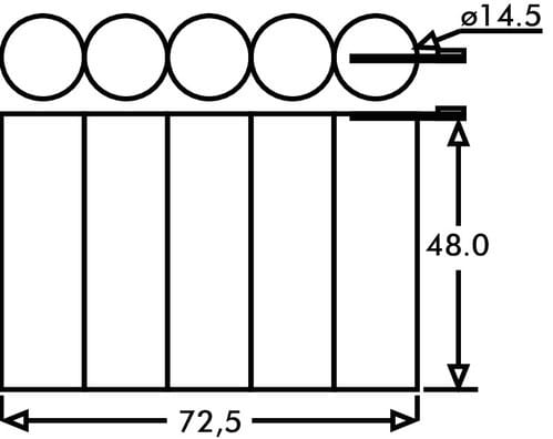 ** Caratteristiche Generali ** Codice dimensione: AA Tecnologia: Ni-Mh Codice IEC: HR6 N. celle: 5 Ricaricabile: si ** Caratteristiche Elettriche ** Tensione: 6V Capacità: 1600mAh ** Caratteristiche Meccaniche ** Dimensioni: 48mm x 72.5mm x 14.5mm Connessioni: fili liberi